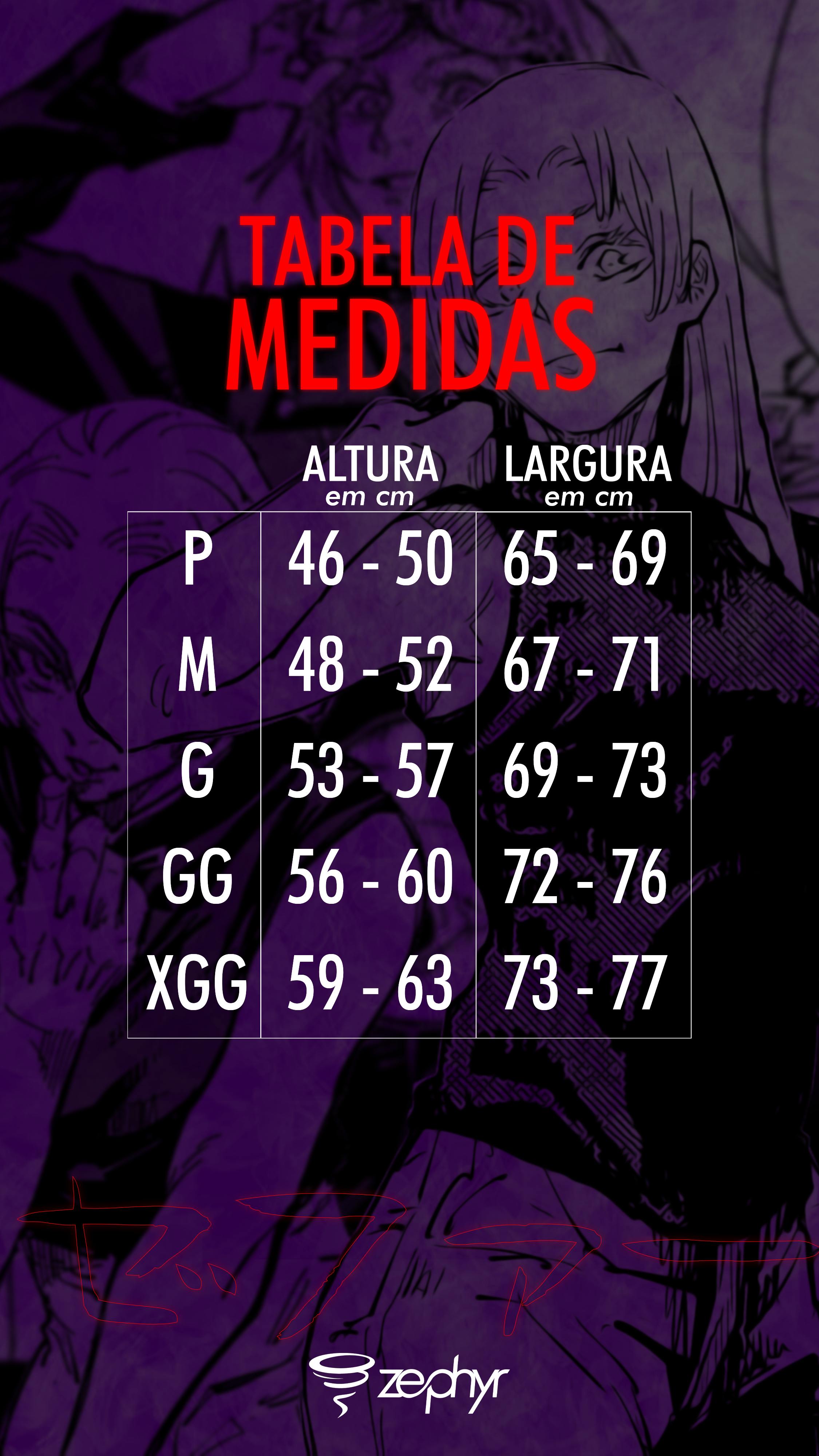 | Tamanho | Largura (cm) | Comprimento (cm) |